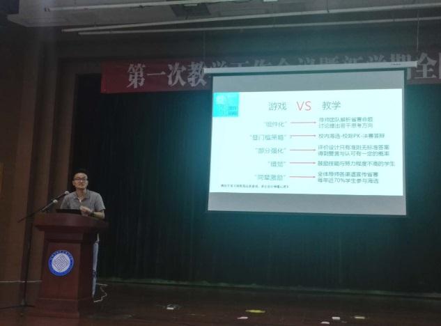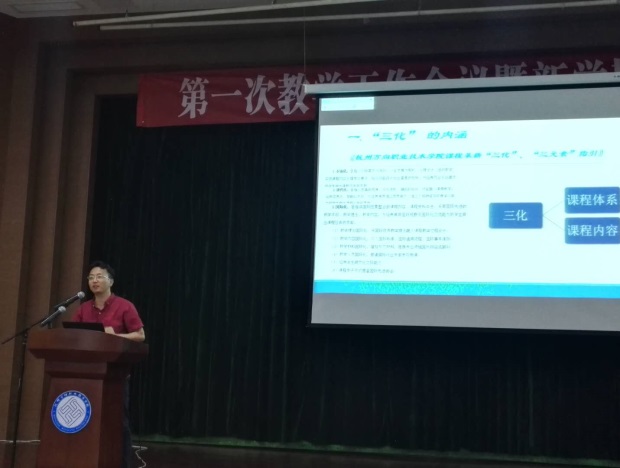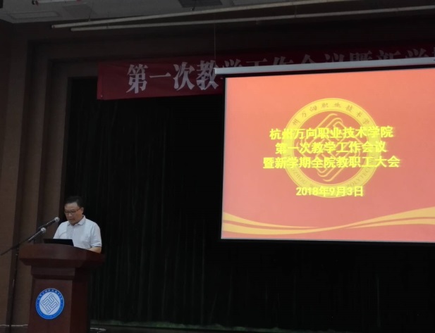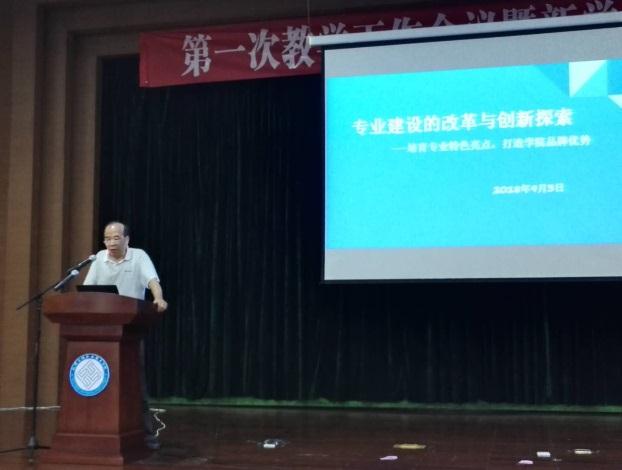 首先学院党委书记莫晓平致开幕词,并在致词中强调学院教学工作要坚守立德树人根本任务、坚持教学工作中心地位、坚定特色办学发展目标、坚信事在人为进取精神,并用鲁冠球主席的“思路决定出路,作为决定地位,一切都在人为”教导和勉励大家积极开拓思路、贯彻教育方针、立足办学宗旨,敢于担当,努力工作,争创佳绩。然后张海松、任国平和沈佳彬三位教师代表分别从专业建设、课程建设、课堂教学的角度作了《专业建设的改革与创新探索》、《课程建设中的“三化”融合》、《现代教学法运用效果与提升策略》的报告与大家分享。朱仁学副院长作了《克难攻坚,提高教学质量》报告,回顾了近一年来学院在教学工作中取得的成绩和不足,并结合学院内部质量保证体系的诊断与改进工作要求详细分析了今后三年的教学工作重点。最后牟惠康院长作了《以革新精神全面提升人才培养水平》的报告,指出只要全体教职员工以革新精神紧紧抓住“抓革新、建机制、育成果、创特色”四点要诀,全面提升学院的人才培养水平,,开创学院教学工作新局面,相信学院的明天会更美好!