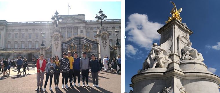 白金汉宫前合影与雕塑