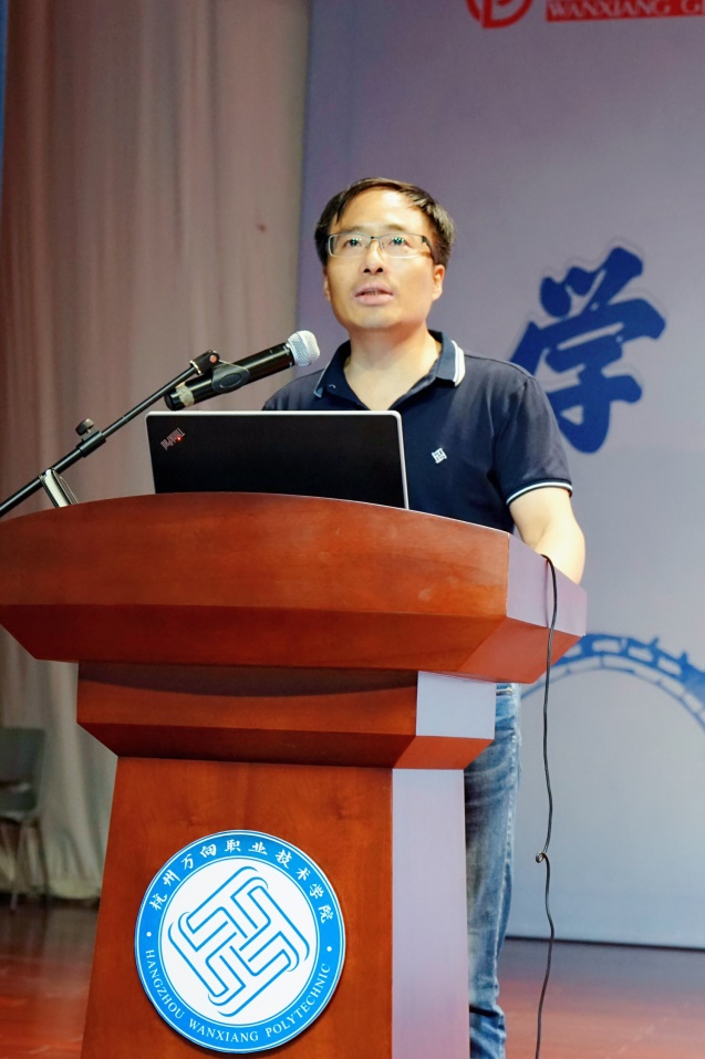 作为教务处处长,胡老师从学习专业知识的角度出发,讲述了学院的办学特色、国际理念、人才培养、英语提升、全人发展等有关学业提升的方方面面。学院将培养能自律自主,有国际视野、创新创业、中英双语和终生学习能力的学生,使学生在离校时成为“ 乐做事、能干事、会说事、善共事、可成事”的企业首选毕业生或创业者。同时,他还告诫新生们以勤奋打好坚实的筑梦基础,脚踏实地地完成大学学业,实现自己的梦想。