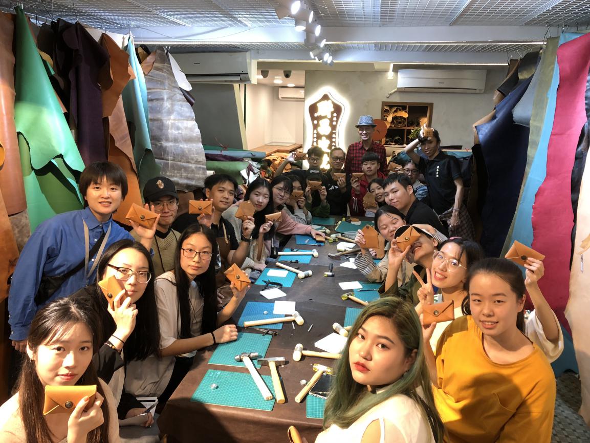 下午教授带领学员去九龙深水�洞竽辖�173号的联昌皮号。它起源于1948年,是香港历史悠久的真皮老字号。这里是校企合作的典范,里面的师傅有不少是知专设计学院的毕业生。师傅们很热情很认真地介绍店铺发展起源,传授我们皮革的种类和制作方式。在这里我们首次见识了手工制作皮具,皮革的裁版、打薄、制作、装饰线条以及印花等工艺。我们首次制作皮具,听到机器打磨的声音、用着LV和GUCCI御用的打孔工具为自己定制真皮卡包,尤其是当师傅赠送我们一个彩蛋环节――教我们在卡包上篆刻自己想要的logo或者名字时,学员们都很兴奋,通过劳作每个人得到了自己独一无二的作品,而且是手工皮具处女作。