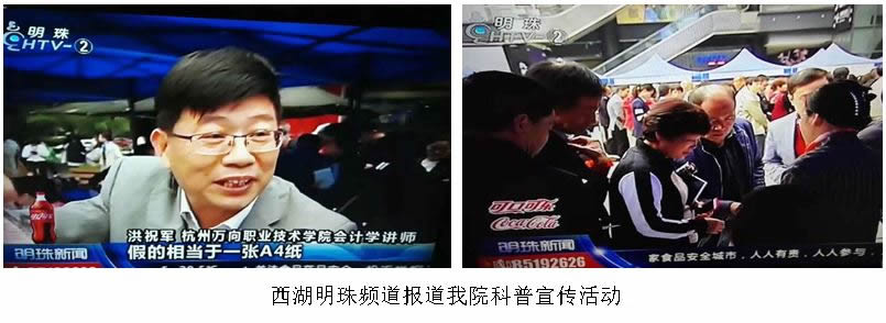 今年科普周活动主题是“奋进新时代 谱写新篇章-纪念改革开放四十周年”,我院社科联紧紧围绕科普周的主题开展了假钞鉴别与网络支付、食品安全、旅游安全、电梯安全、科学养生等市民普遍关心的问题,与市民交流沟通,解疑释惑。我院的社科普及内容贴近生活,吸引了大批市民前来咨询,西湖明珠频道还采访和报道了我院的科普宣传活动。
