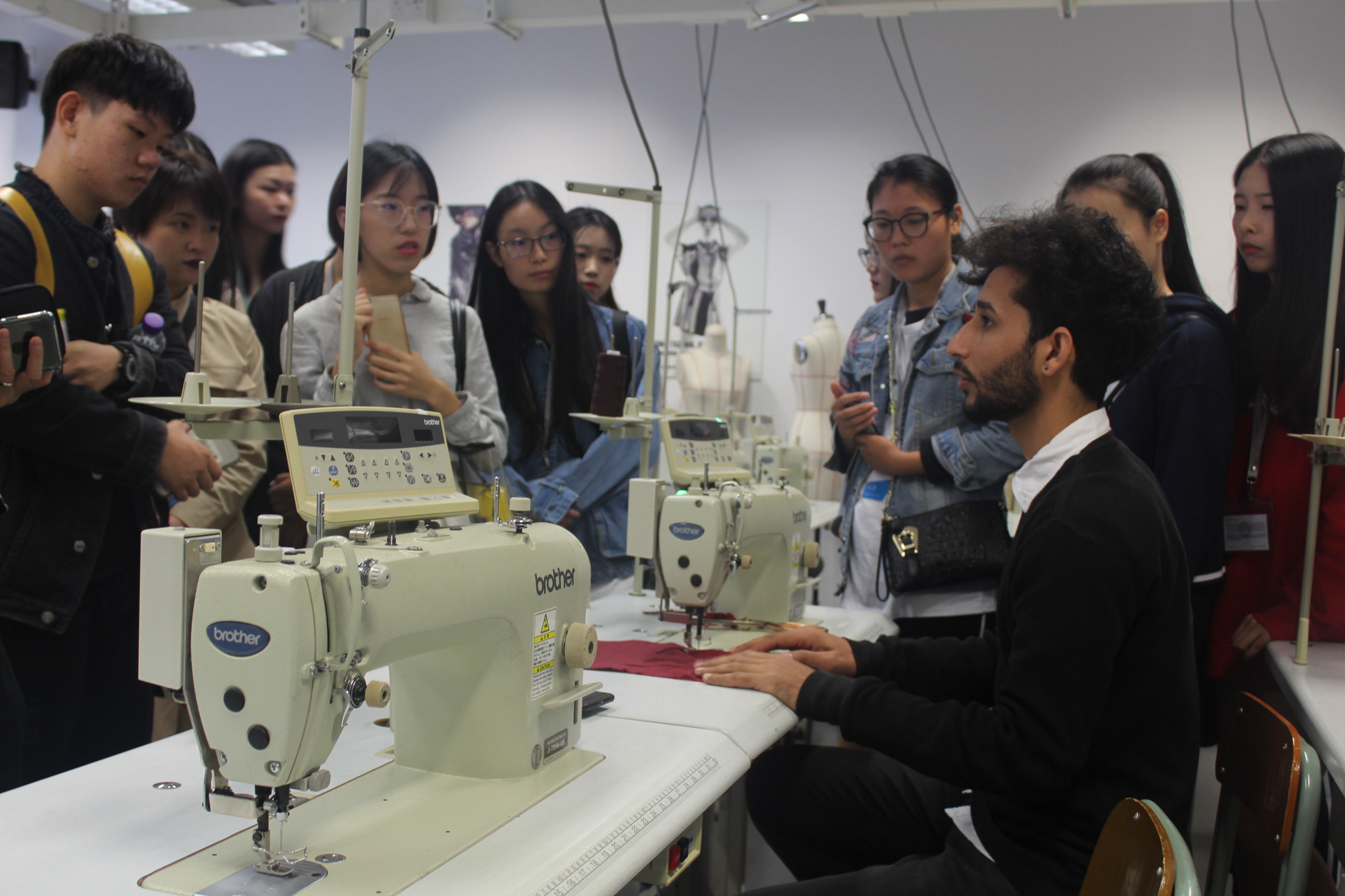 随后,Shaun教授让我们走入知专设计学院的学生课堂,领略这里的学习风貌。我们与知专设计学院的学生进行了一番交流,发现这里的教学模式和我们在自己的学院相差无几,都是以分组操作为主,每个组员都分配了自己的任务,相互之间的合作非常默契,每个人的合作精神都非常强,这点值得我们学习。