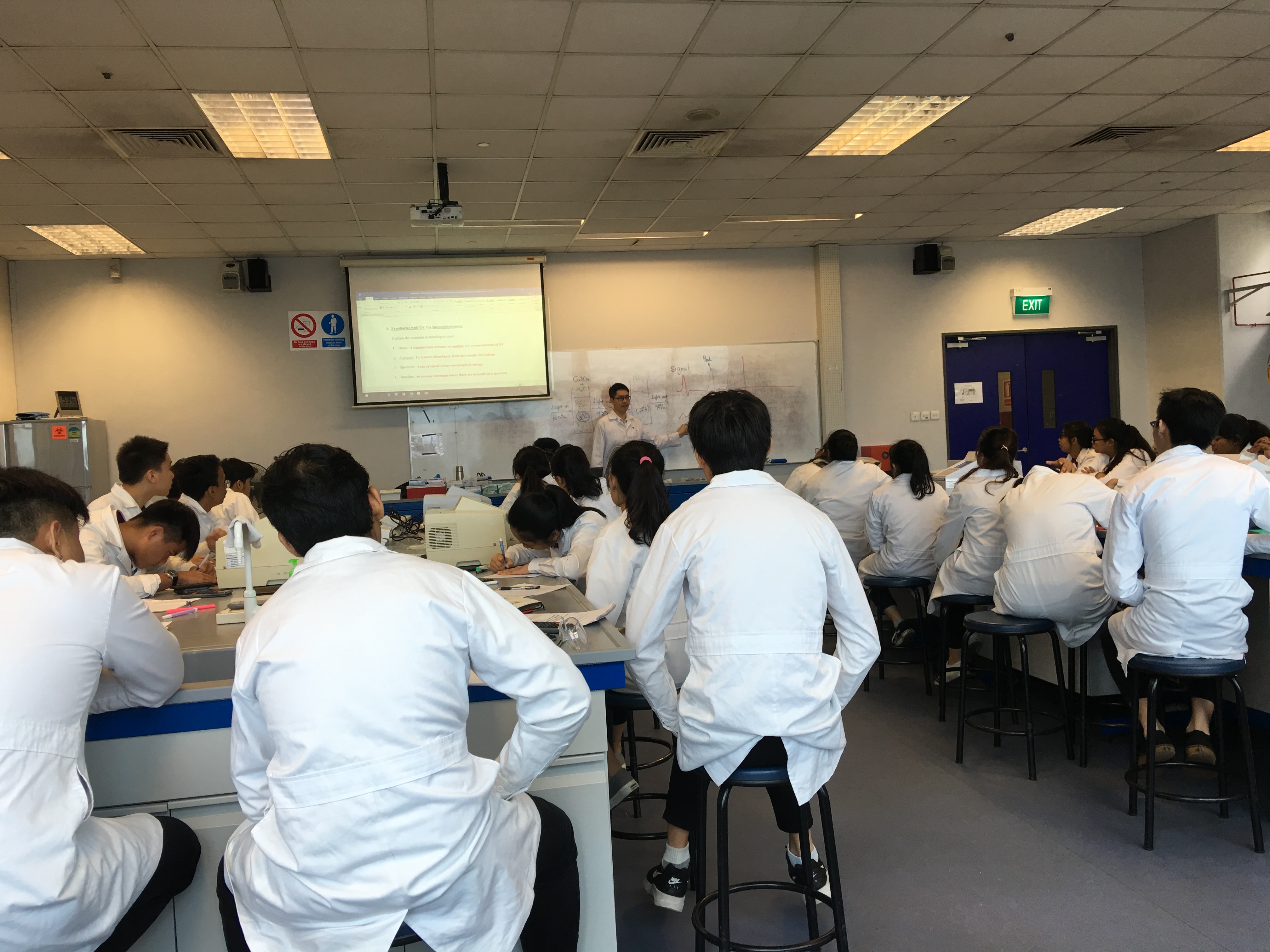 张学兵老师10月份听了《高级仪器分析AIA》、《基础仪器分析BIA》、《普通微生物GM》3个课程模块的6次课,了解到ITE的理论课大部分采用三个班100多人的大班上课(2个小时),也有部分课程会在实验室1个班上理论课,大部分采用讲解法、案例教学法,并配合师生大量的师生互动、E-learning。教师一般都是会用半个小时左右讲解当日课程内容,讲解过程用提问等互动方式,其余时间师生一起讨论前一次的练习、布置新的练习给学生做。