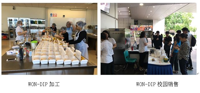 参与了《WON-DIP产品创业项目》的产品制作、货架期试验以及产品推广,完成了多批次产品的微生物检验工作,在产品推广过程中积极参与产品制作,提出建设性意见(调整销售成品的配比、增加产品销售的问卷调查),并得到项目组的认可和采纳,主动布置校园销售场地。