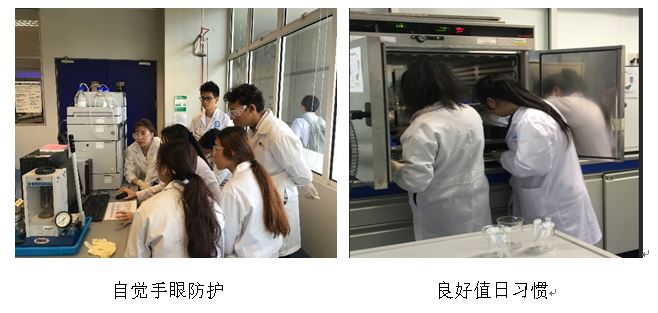 学生在实验课中有良好的规则意识和安全意识,能够主动遵守着装、手眼防护、禁止饮食、器皿清洗干燥、垃圾分类、废液分类、值日等制度、规则或要求。教师在实验课开始之前会先强调安全和值日要求,并在教学全程自己首先严格按照以上要求执行,以身作则地引导学生养成良好的习惯。