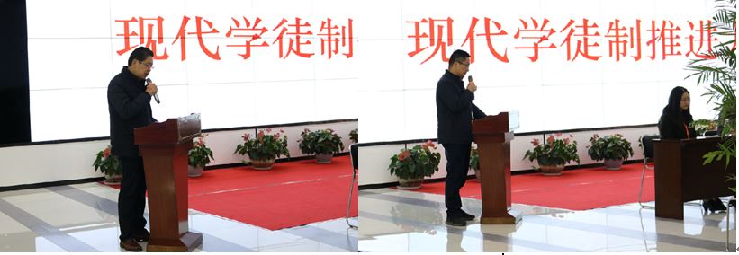 第三项议程:宣读校企双方文件。李可经理宣读《关于现代学徒制师徒结对安排的决定》,高福友主任宣读《关于将企业师傅聘为校外兼职教师的决定》。