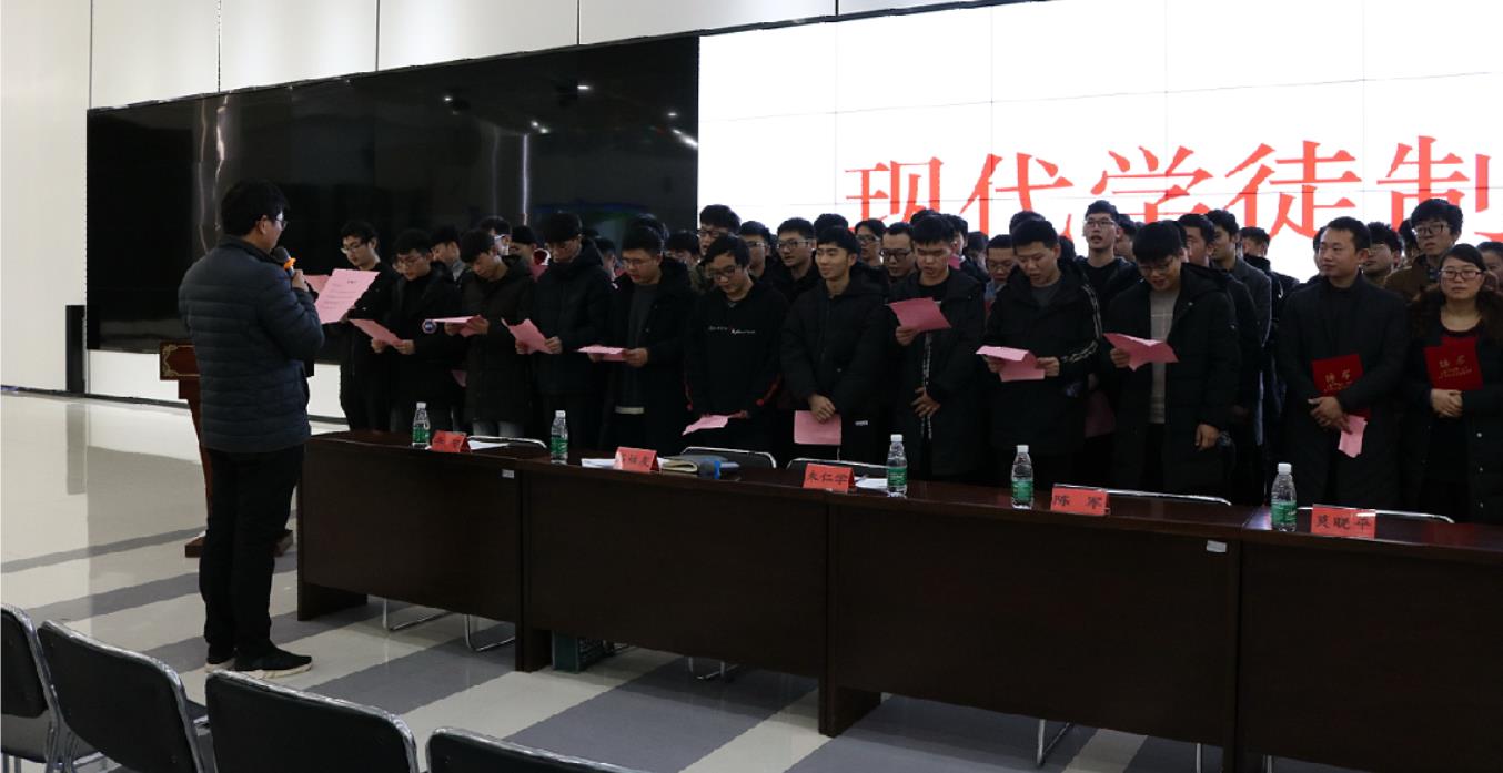 第五项议程,举行学徒制拜师仪式。44名师傅宣誓:做师傅是我的真心选择,带徒弟是我的光荣职责,我要言传身教,以身作则,早日把徒弟培养成才。60名徒弟宣誓:做徒弟是我的真心选择,有师傅是我的真情期盼,我要尊师敬师,努力学习,早日成为独当一面的人才。