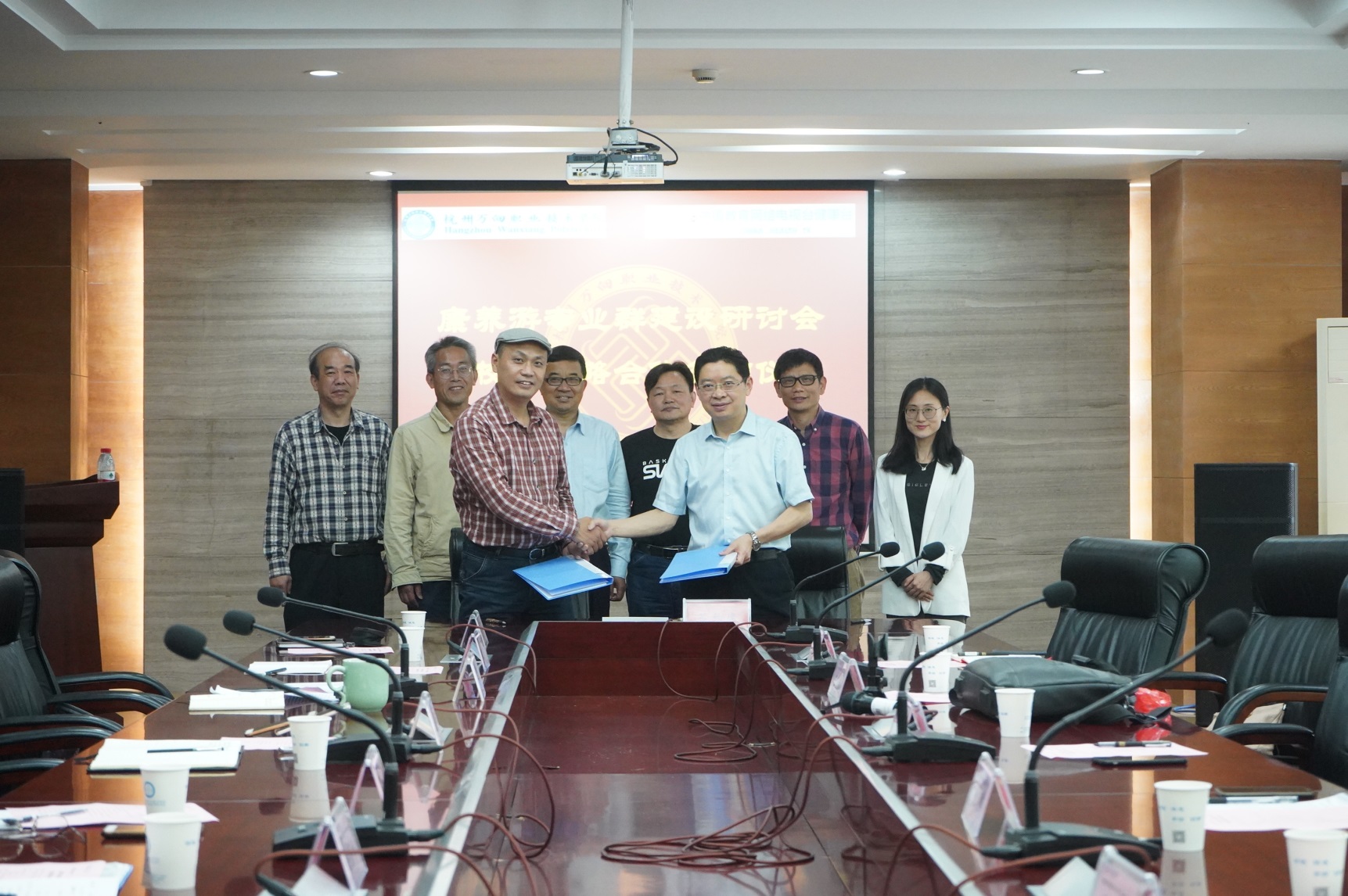 牟惠康院长首先介绍了学校以及康养游专业群学科情况,他表示此次合作协议的签署将进一步实现高校与社会的“无缝对接”,为社会发展注入新的活力和动力。万向学院将整合国家政策、社会支持和专业群的优势和资源,培养具有国际视野和高水平技术人员的学生,实现社会双赢,甚至多赢,加快地区健康与旅游的建设。随后,中国教育网络电视台健康台台长冯定祥充分肯定了专业群建设的人才培养方向,并提出细节性建议,他表示康养游的出发点是为了提高国民健康、幸福和快乐,而中医可以从药食,中药以及针灸推拿改善国民体质,睡眠质量,有效地提高国民生活水平,因此专业群建设应加入中医教学内容,进一步提高人才技术多元化。浙江科技学院健康中国战略研究中心主任王克春也表示,康养游专业群人才培养方向应基于健康化理论知识+实践操作能力,让国民在未来的旅行中,不仅可以锻炼身体,开拓眼界,也能学习到对健康有帮助的知识。最后,中国教育网络电视台健康台两位副台长姚伟和宣小勇也表示,未来中医药旅游会是一个热点方向,国家已有相关文件并建立了多个示范项目,实现康养游专业群与中医的结合,突出康养游专业群的多元化优势,与市场经济,终端服务更加紧密联系,建设属于中国的大健康体系。