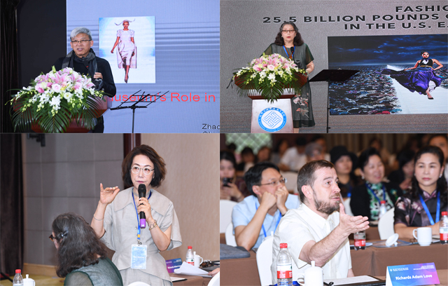 随后,与会嘉宾纷纷发言。中国丝绸博物馆馆长赵丰做了《博物馆的时尚角色》主旨演讲,阐释了博物馆的文化社区、文化纽带等重要作用。“时尚界的哈佛”--美国纽约州立大学时装技术学院副教授凯伦•什兹,就工艺与技术能否在我们的未来共存,最前沿的服装设计与理念,环保健康趋势进行解读。此外,韩国同德女子大学服装设计研究生院院长崔贤淑、曾任卡尔拉斐尔(老佛爷)集团工作室顾问的理查兹・亚当、北京服装学院服装艺术与工程学院副院长郭瑞良,杭州电子科技大学、杭州职业技术学院等国内高校学者代表以及国内著名服装企业嘉宾各抒己见,探讨服装发展大趋势。