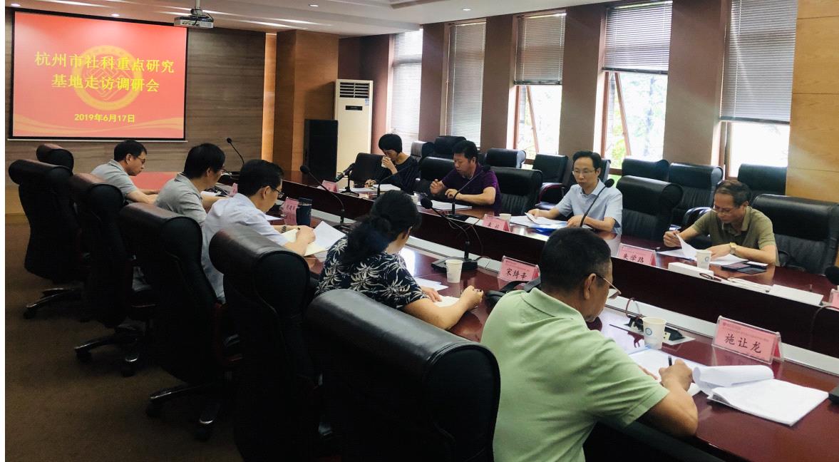6月17日上午,杭州市社科联主席卓超、社科联副主席朱学路、科研管理处处长梁坤、科研处调研员张曾逸、社科联办公室副主任叶晓一行5人莅临我院走访调研杭州市哲学社会科学重点研究基地“浙江制造国际化研究中心”,并在6213会议室召开调研会。学院党委副书记、副院长朱仁学,科研统筹处处长胡建华,基地首席专家宋绮辛及基地课题主要负责人参加了调研会。会议由市社科联科研管理处梁坤处长主持。