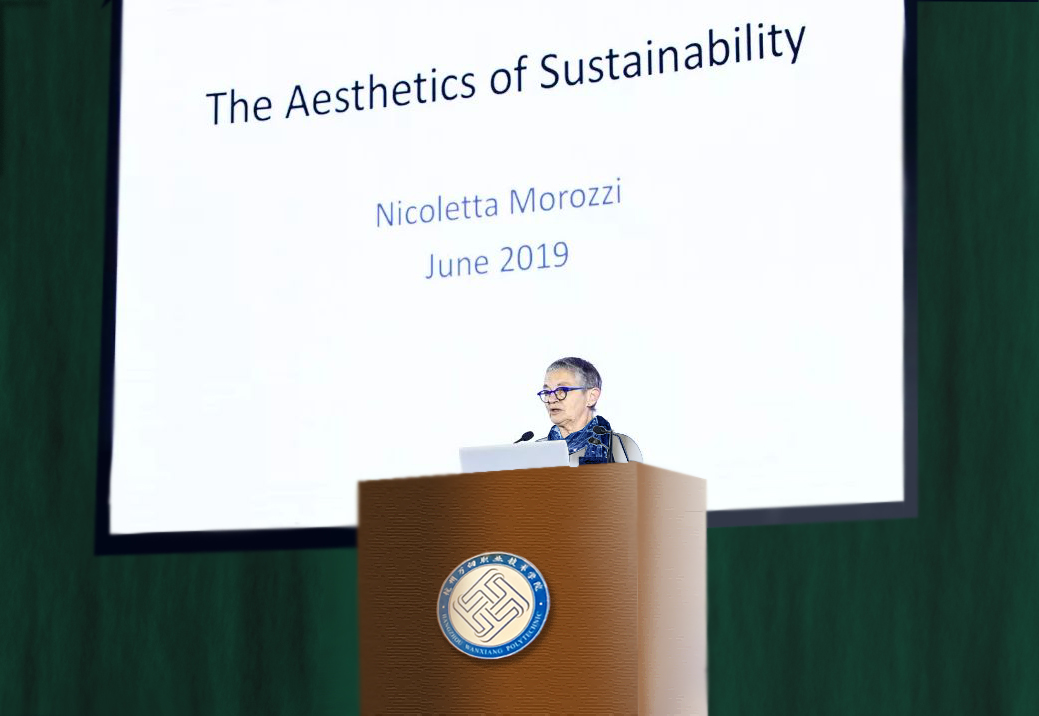6月25日下午,我院服装设计与工艺专业很荣幸邀请到意大利Nicoletta Morozzi教授在小报告厅进行“The Aesthetics of Sustainability”为主题的面料创意讲座。先进制造与交通系系主任高福友教授以流利的英文开场致辞,教学副主任曾爱斌教授、学生管理副主任姚林先生、教师教学发展中心张倩教授、现代服务与管理系主任苏怀智先生莅临现场,服装团队虞韵涵和刘士瑾二位教师担任此次讲座的翻译,在场的师生仔细聆听,交流氛围十分热烈。