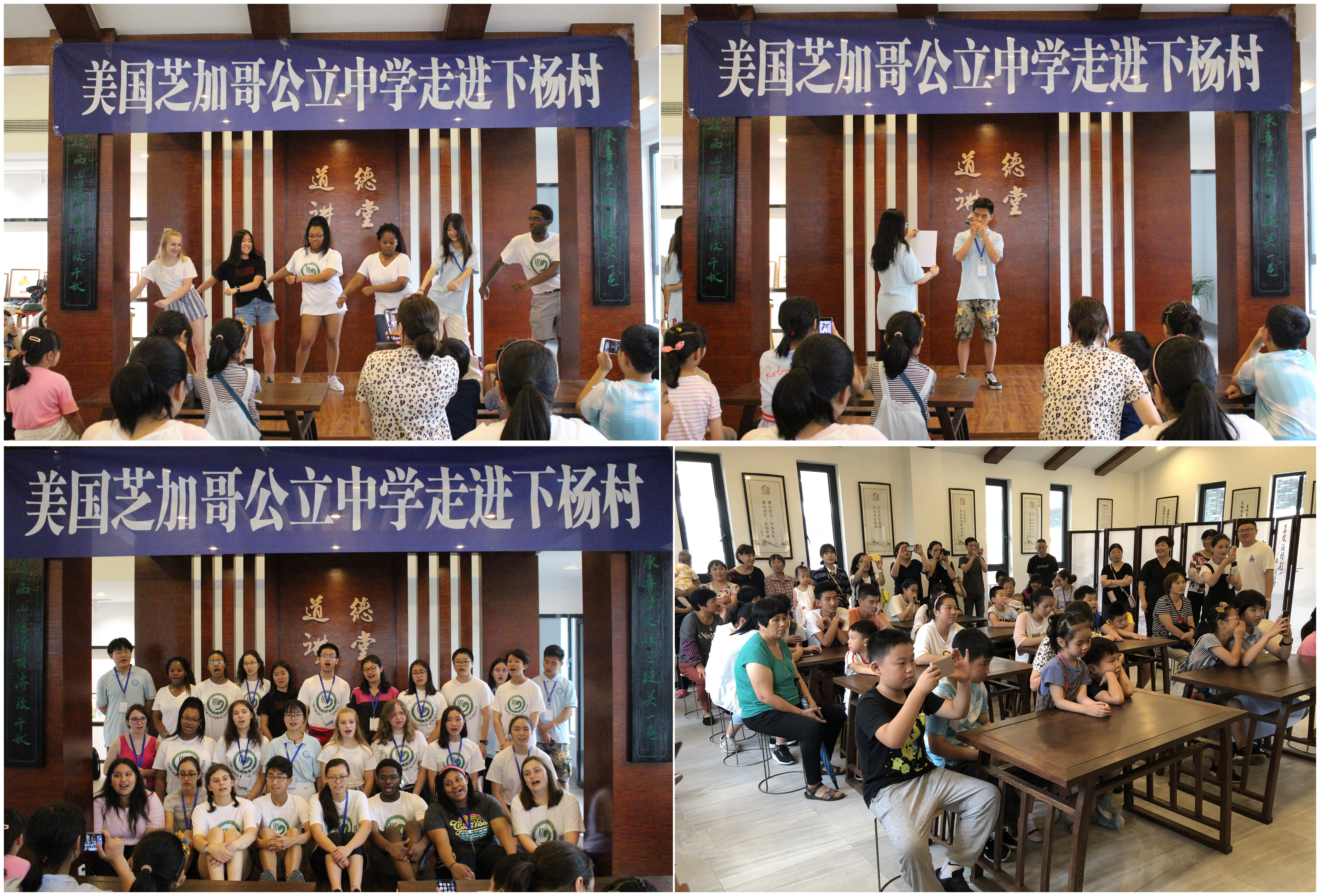 7月12日上午,我院特色党建品牌“爱心课堂”联合“十万强”项目美国芝加哥公立中学研习团师生(以下简称“十万强”师生)前往双浦镇下杨村文化礼堂开展烘焙体验、文艺表演等暑期公益活动,活动吸引了60余名当地中小学生及村民参加。