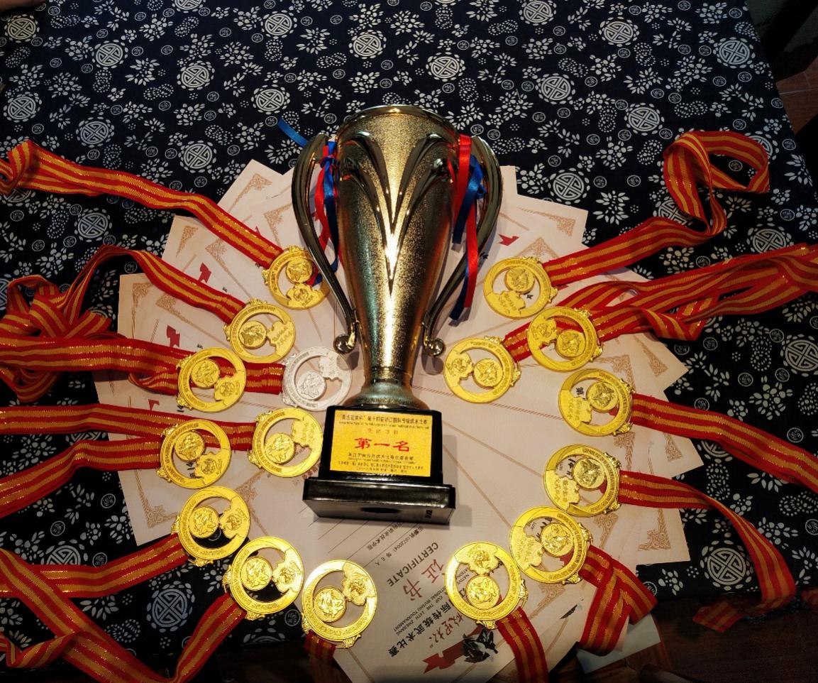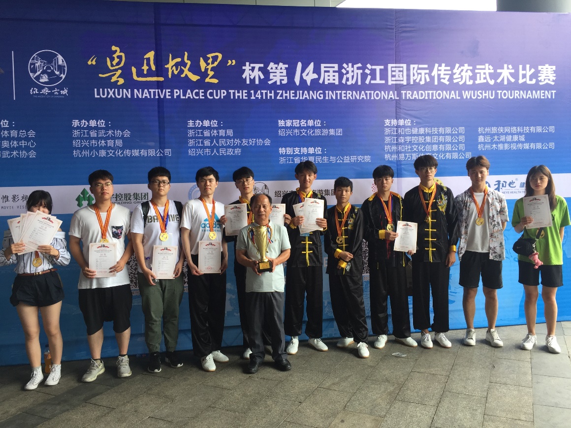 2019年7月14日,第十四届浙江国际传统武术比赛在绍兴奥体中心落下帷幕,我院通识教育系非遗基地“五常十八般武艺班”在体育教学团队负责人尹先平老师、教练胡金火的带领下,参加了此次比赛,获得单项7金1银,集体8金(集体赛事每人一枚金牌)的好成绩。