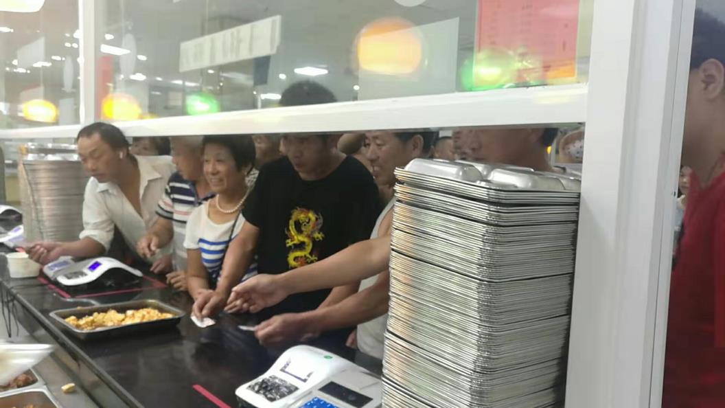 安置工人在学院食堂愉快用餐