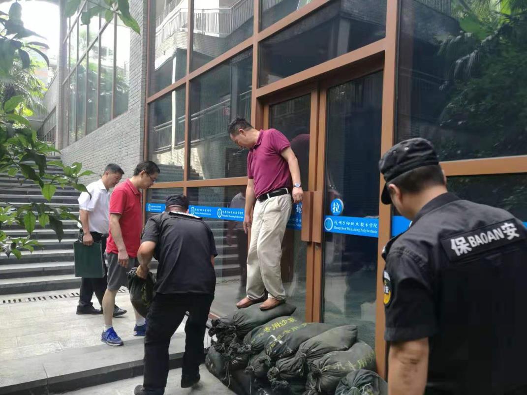 8月10日,超强台风“利奇马”在浙江沿海登陆并一路肆虐北上,给我省的生命财产安全带来严峻的考验。我院党政领导班子率领学院全体中层干部和学院防汛工作领导小组全体成员48小时排查隐患、未雨绸缪,确保了校园安全。同时作为西湖区避灾安置中心和金鱼井社区避灾安置点,我院积极承担社会责任安置工人。