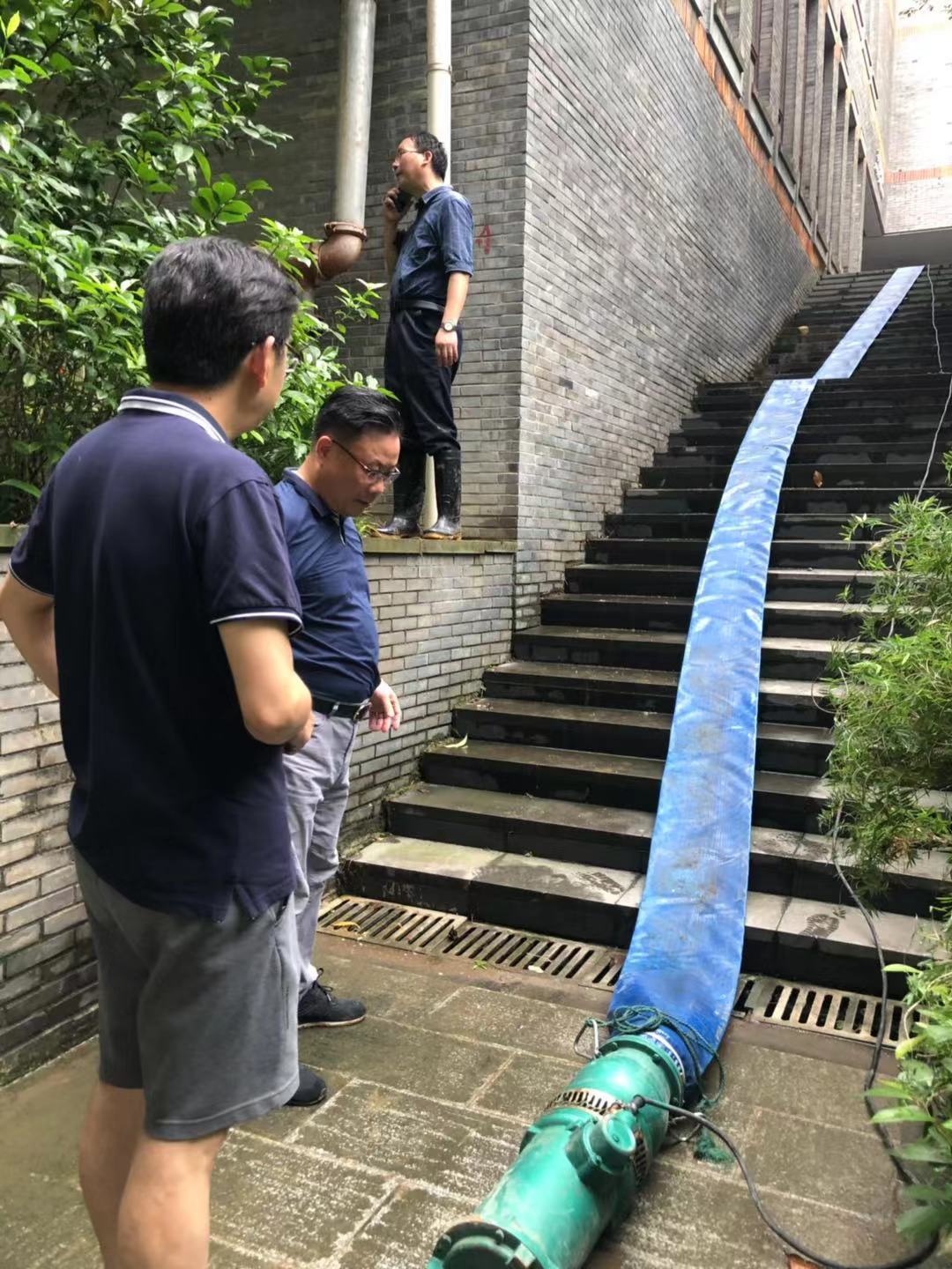 8月8日在收到台风预警后,学院领导带领后勤产业处、保卫处全体成员,对学院各处安全隐患进行一一排查,对下水道、排水沟进行疏通,确保排水通畅;在容易引发雨水倒灌的路口、车库入口、大报告厅等地放置备用沙包和备用水泵。8月9日上午9点,学院召开防汛工作领导小组全体会议,对校园各个区域进行网格化管理分工,确保各项工作落实到人,同时下发防汛装备和设施。8月9日傍晚雨量增大,各小组对排水状况进行24小时实时监控。8月10日上午,学院召开防台防汛工作检视会,朱仁学副院长汇报了工作布置情况,牟惠康院长指出要高度重视、措施到位,确保防汛实效和生命财产安全。