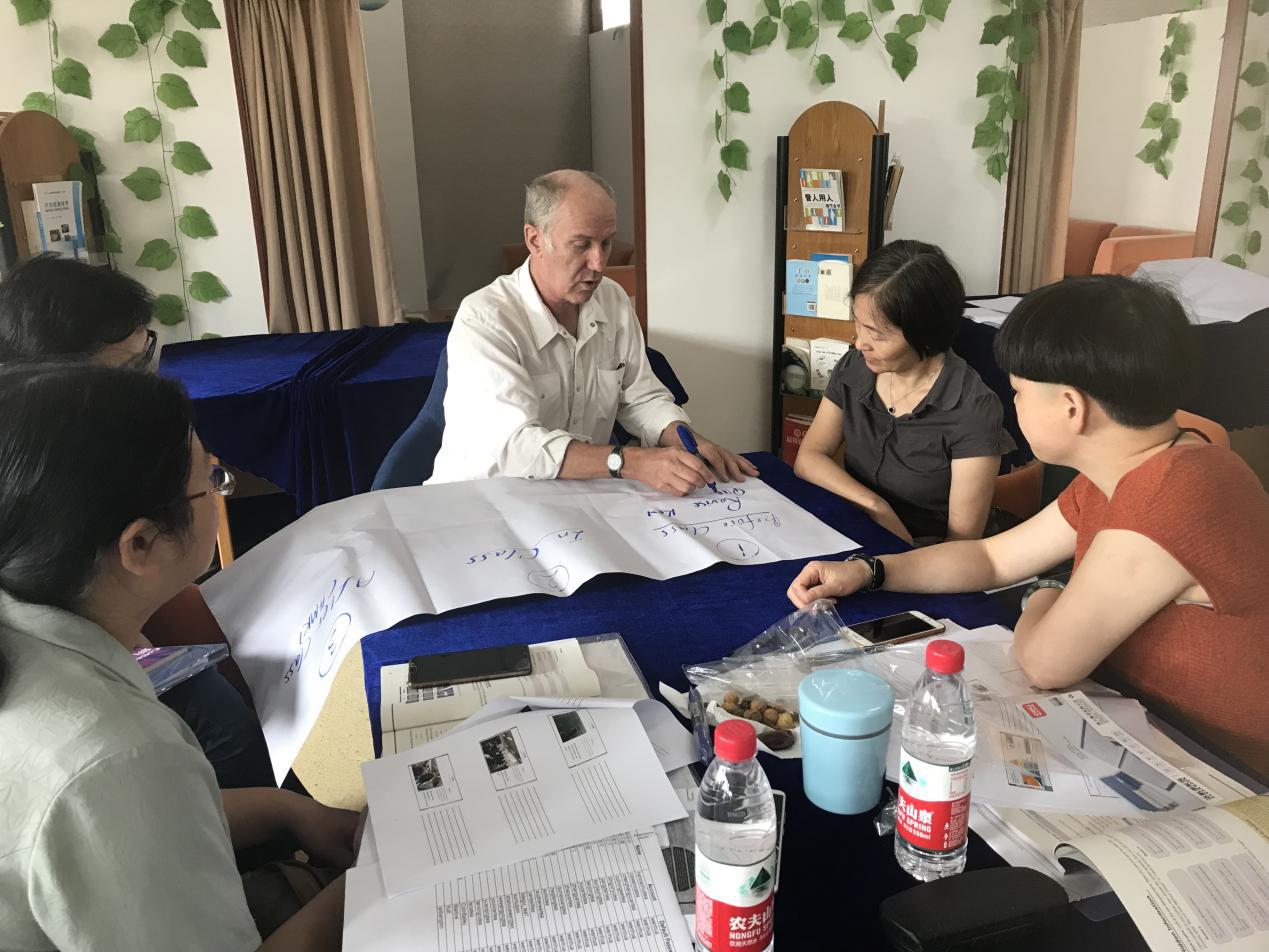 研讨会于9月27日上午在图书馆2楼咖啡吧召开,通识教育系副主任李德贵首先介绍了学院“三化三元素”教学改革在英语教学上的推进情况,要围绕英语教学改革标志性成果建设,从合作机制、互补方式、课程创新等方面完成中外教团队融合。接着从布鲁姆认知分类(Bloom’s Taxonomy)着手解释了“翻转课堂”的设计理念和运行机制,结合本学期选用的教材,阐述了如何构建“学习者为中心”翻转课堂模式,从而使口语教学突出学生的英语表达能力培养,体现《中国英语能力等级量表》(SCE)中的口语分级要求,完成学院英语提升的整体目标。中外教按照结对子分组的形式开展了热烈的讨论。会议第二阶段,单雪雯老师介绍了如何使用优学院平台,如何完善英语口语“翻转课堂”的各项教学实施环节,并请有经验的外教对他们的中教Partners伙伴进行了指导。
