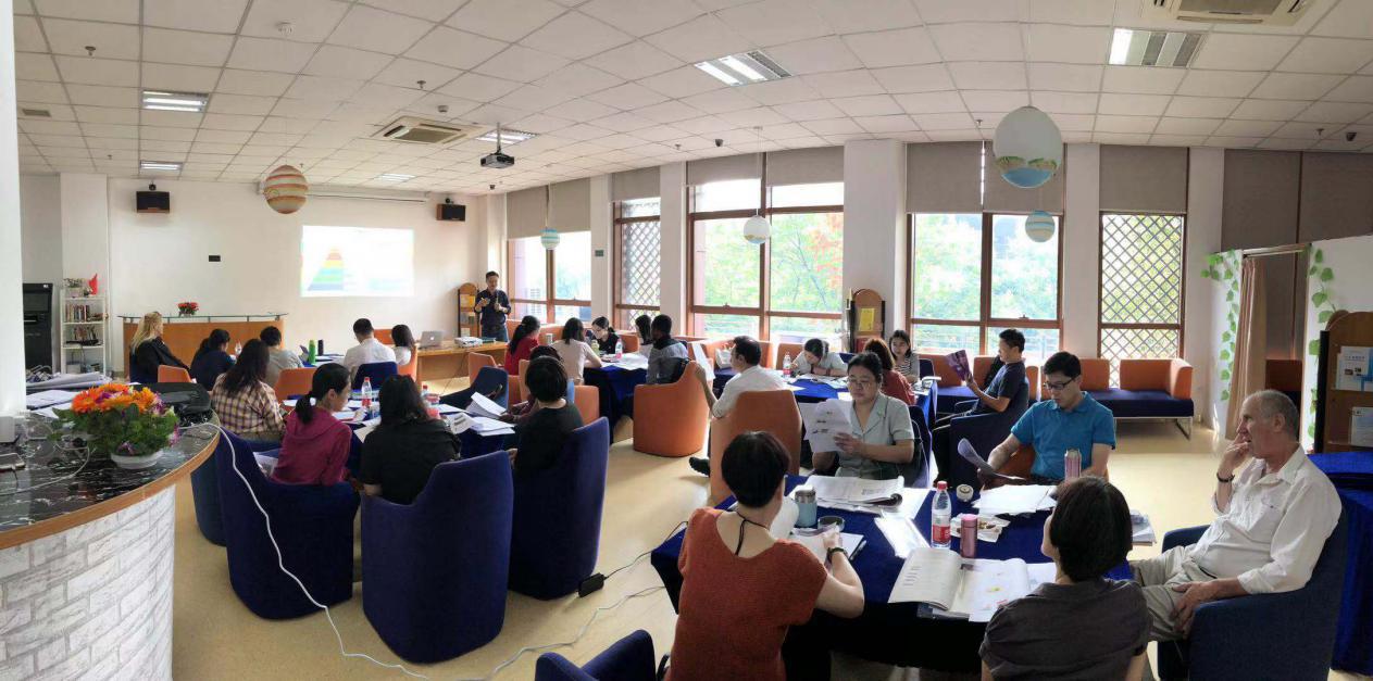 研讨会于9月27日上午在图书馆2楼咖啡吧召开,通识教育系副主任李德贵首先介绍了学院“三化三元素”教学改革在英语教学上的推进情况,要围绕英语教学改革标志性成果建设,从合作机制、互补方式、课程创新等方面完成中外教团队融合。接着从布鲁姆认知分类(Bloom’s Taxonomy)着手解释了“翻转课堂”的设计理念和运行机制,结合本学期选用的教材,阐述了如何构建“学习者为中心”翻转课堂模式,从而使口语教学突出学生的英语表达能力培养,体现《中国英语能力等级量表》(SCE)中的口语分级要求,完成学院英语提升的整体目标。中外教按照结对子分组的形式开展了热烈的讨论。会议第二阶段,单雪雯老师介绍了如何使用优学院平台,如何完善英语口语“翻转课堂”的各项教学实施环节,并请有经验的外教对他们的中教Partners伙伴进行了指导。