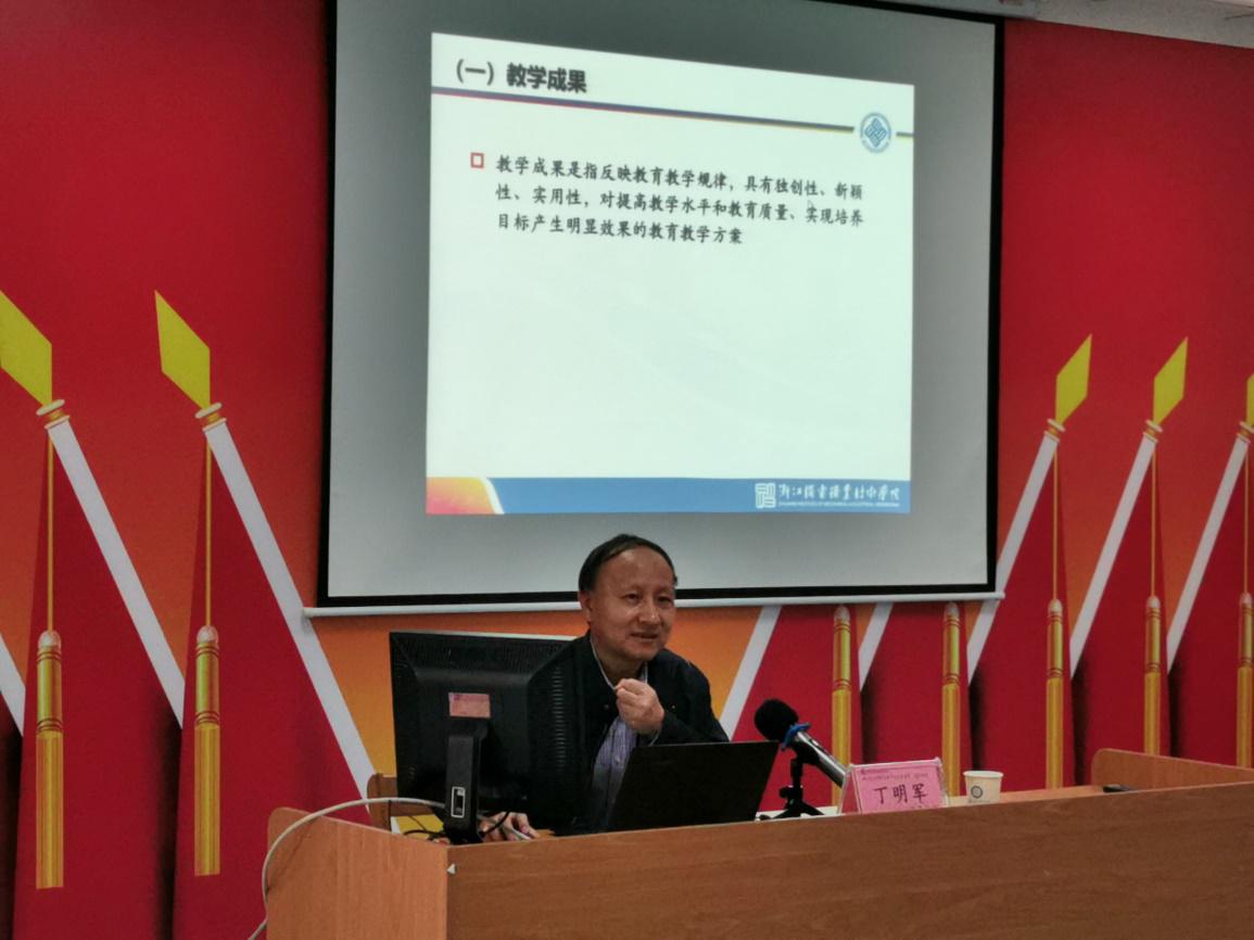 为指导专业团队教师凝练教学成果,提升教学成果奖申报质量,增强教学成果奖培育的意识和能力,推动教育教学改革,提高学院教科研水平,2019年10月31日下午,我院邀请浙江机电职业技术学院党委委员、院长助理丁明军教授在新校区党员之家做“教学成果奖培育和申报”专题讲座。讲座由学院党委副书记、副院长朱仁学教授主持,教师教学发展中心主任、教务处处长、各系主任、教学副主任、团队负责人共计33人参加。