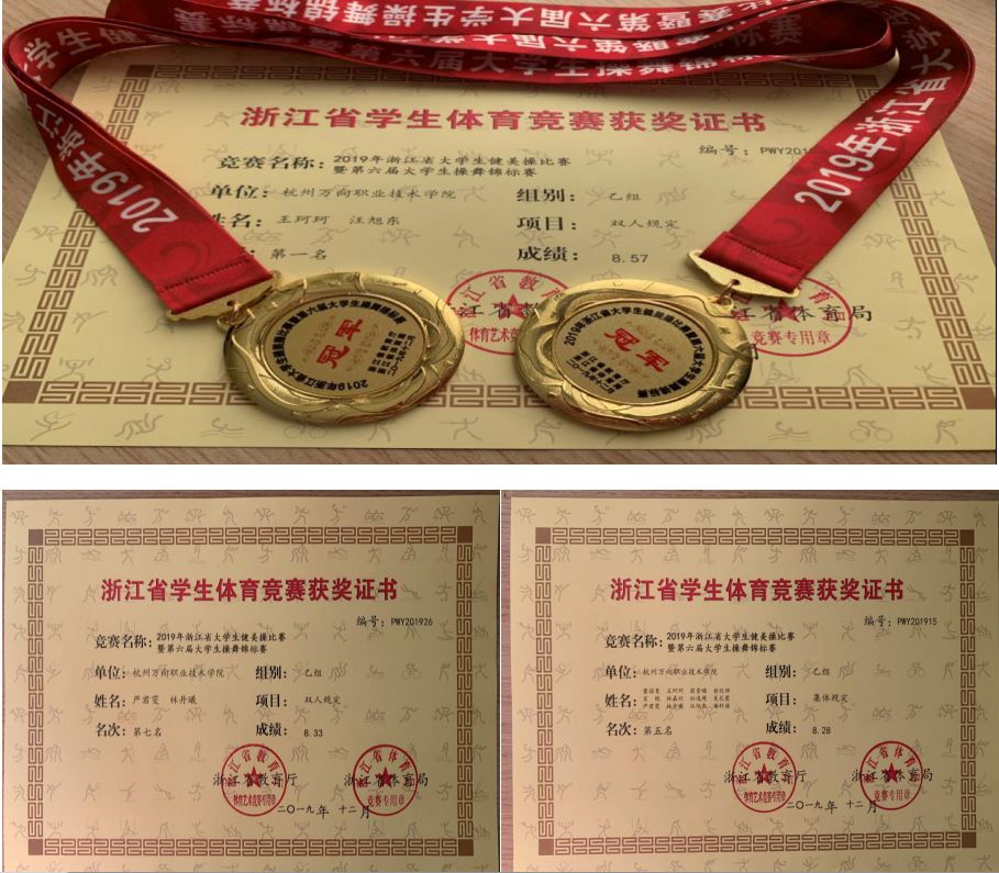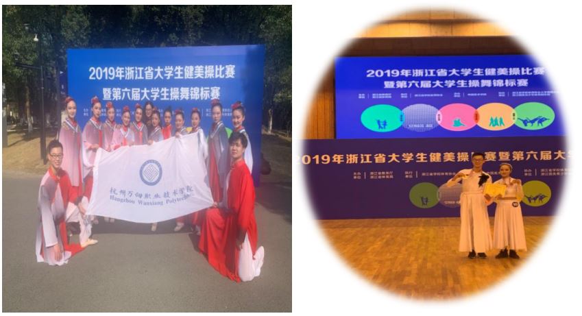 2019年12月6日-8日,浙江省大学生健美操比赛暨第六届大学生操舞锦标赛在中国美术学院隆重举行。我院操舞代表队13名运动员在体育教学团队南娜茜老师的带领下喜获佳绩,服设171汪旭东、服设182王珂珂获得乙组双人舞第一名;同时,代表队还获得乙组双人舞第七名、乙组集体规定动作第五名的好成绩。