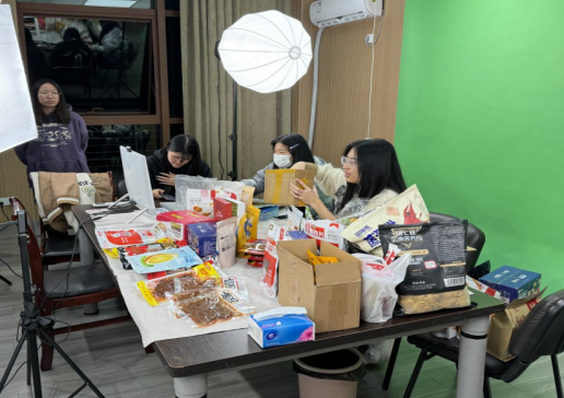 工商企业管理专业教研室全体教师合影 专业学生在工作室直播带货