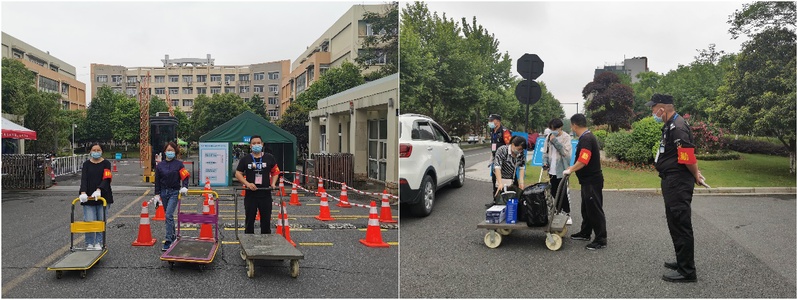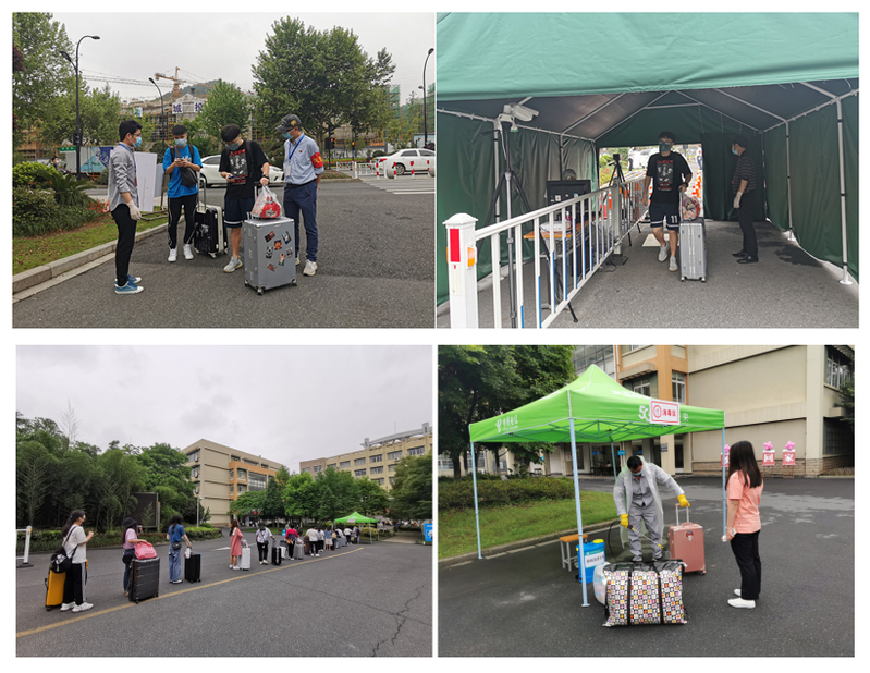 学院各相关部门的工作人员在清晨6点就早早上岗,安排接站、调试检测设备、搬运防控物资等一系列迎接首批学生返校的工作有条不紊地进行着,这是一场不容一丝马虎的考验。
