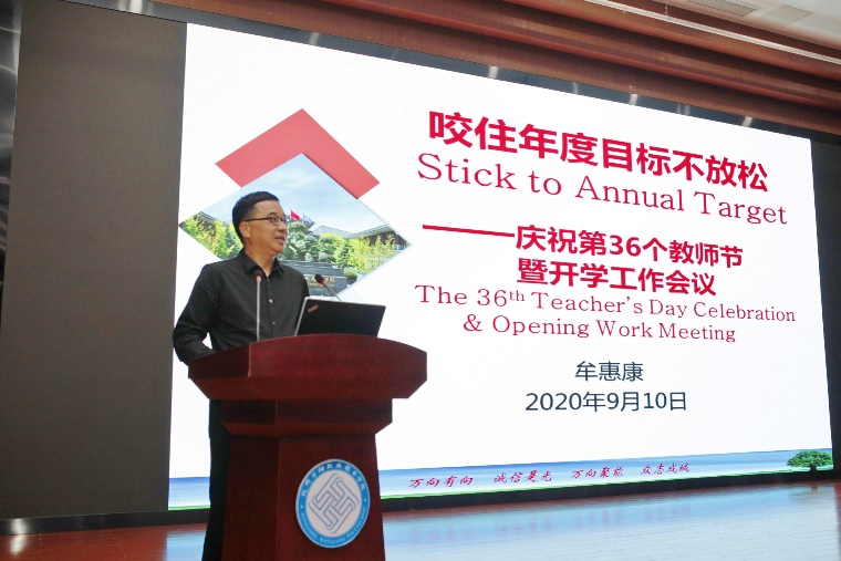 学院院长牟惠康围绕《咬住年度目标不放松》作报告,报告回顾了第二次教学工作会议部署的各项工作,分析了当下学院的重点工作,要明晰目标,做到五个“不放松”;突出重点,完成好五项“大任务”。提出了学校2021年重点创新计划,以科研兴校战略为总抓手、以“科研兴校推进年”活动为主线、全面加强科研工作,为下一阶段工作指明了方向。最后,牟惠康院长鼓励大家要嗨起来、做起来、合起来,在新的学年,迈开新的步伐,取得新的业绩!