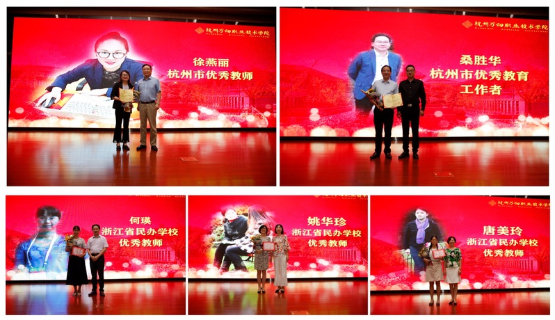 会议最后,对我院获得“浙江省民办优秀教师”、“ 杭州市优秀教育工作者”、“ 杭州市优秀教师”荣誉称号的教师进行了表彰,院领导为全体获奖教职工颁发证书。