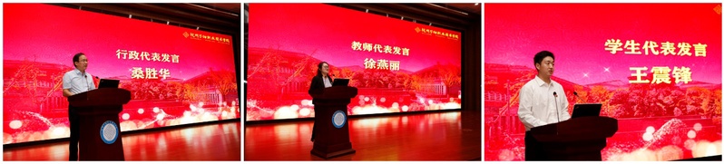 杭州市优秀教育工作者桑胜华、杭州市优秀教师徐燕丽分别作了大会发言。学生代表王震锋作教师节献词,表达了对老师们的感恩,对学校的热爱。