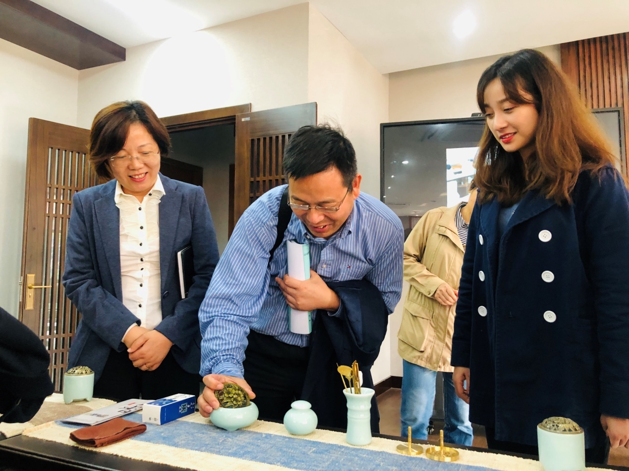 随后,专家组一行在牟惠康院长、金耸影总监陪同下,现场勘察茶博馆、茶艺室、香艺馆、绿色食品生产实训基地,体验香片制作流程、探讨茶文化、品尝学生自制茶点。通过听、看、亲自体验的多方位勘察,专家组对学院推行体验式教学、挖掘自身优势,通过六艺课程、“爱心课堂”等具有鲜明特色的课程与活动开展公益性的社会服务等方面的给予高度赞许,并就推进中小学生劳动实践教育工作进行了交流,给出建设性指导意见。