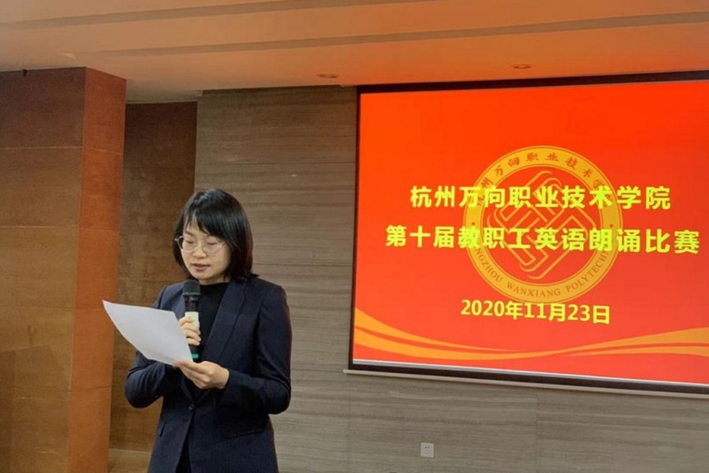 2020年11月23日,学院第十届教职工英语朗诵比赛在二号校区6213会议室举行。来自各部门、系(部)共15位教职工参加此次比赛,交流合作处徐佩兰处长、数字贸易系孙璐老师、康养旅游系薛宇航老师担任评委。