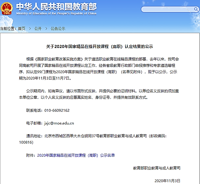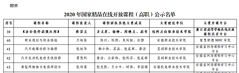 近日,教育部公示了2020年国家精品在线开放课程认定结果,我院《办公软件高级应用》课程成功入选。这是我院首次获得国家精品在线开放课程的认定,是课程负责人蔡荣文老师带领周桃义、高奇、沈燕、戚伟慧等信息技术教研室老师经过5年的不断努力取得的教育教学成果。