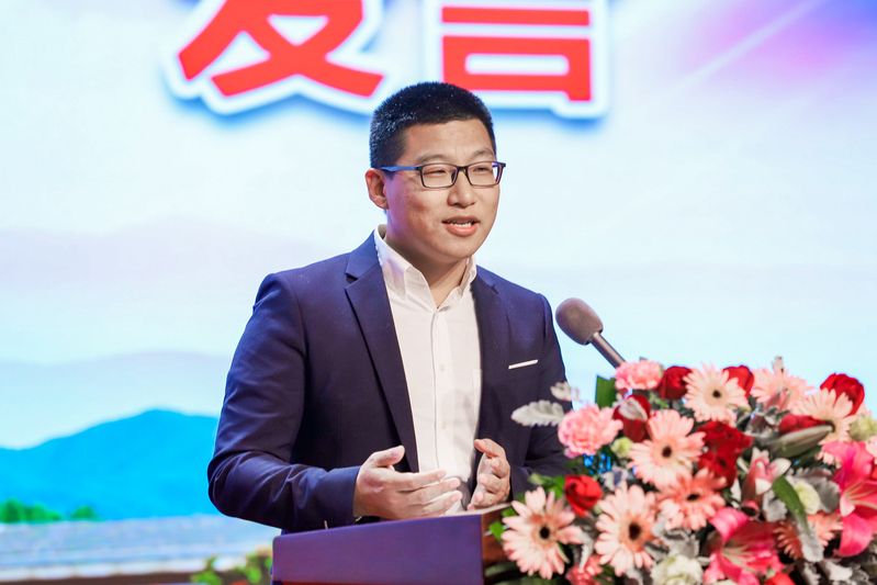 校友代表、全国农业农村创业创新优秀带头人、宁波市鄞州姜山归本水稻农场主、园艺102班汪琰斌发言