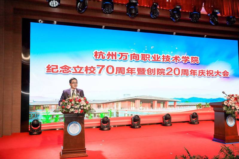 浙江省政府副秘书长蔡晓春书面致辞,杭州市政府副市长陈国妹讲话,兄弟院校代表龚建立书记、万向集团资深执行副总裁管大源、校友代表童日晖、汪炎斌分别发言,表达了对学院立校70周年、创院20周年的祝贺之情及寄语学院未来发展更美好。
