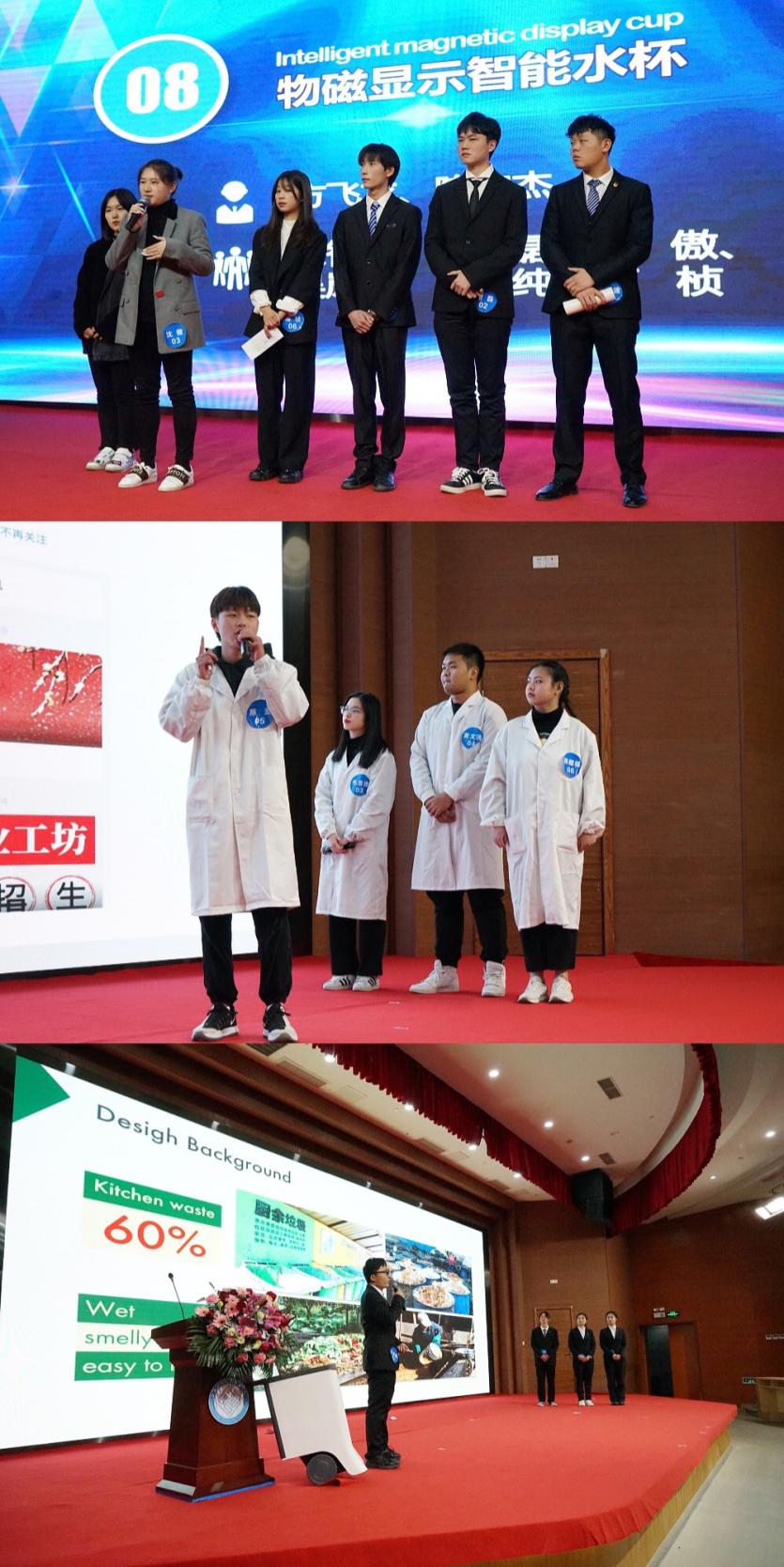 最终智能技术系《物磁显示智能水杯》团队获得创新设计一等奖;数字贸易系《智慧杀菌灯点亮您的健康生活》、康养旅游系《胃你着想》两个团队获得创新设计二等奖;智能技术系《多功能多场景-智能垃圾桶》、设计创意系《变废为宝—农村厨余垃圾处理器及施肥器》两个团队获得创新设计三等奖。比赛结束后,来自浙江大学的特邀评委余老师进行了精彩的双语点评,她对本次大赛给予了高度评价,对各团队选手的英语表达和创新精神由衷赞叹,同时也给出了建议,希望同学们在明年的大赛中再创佳绩。