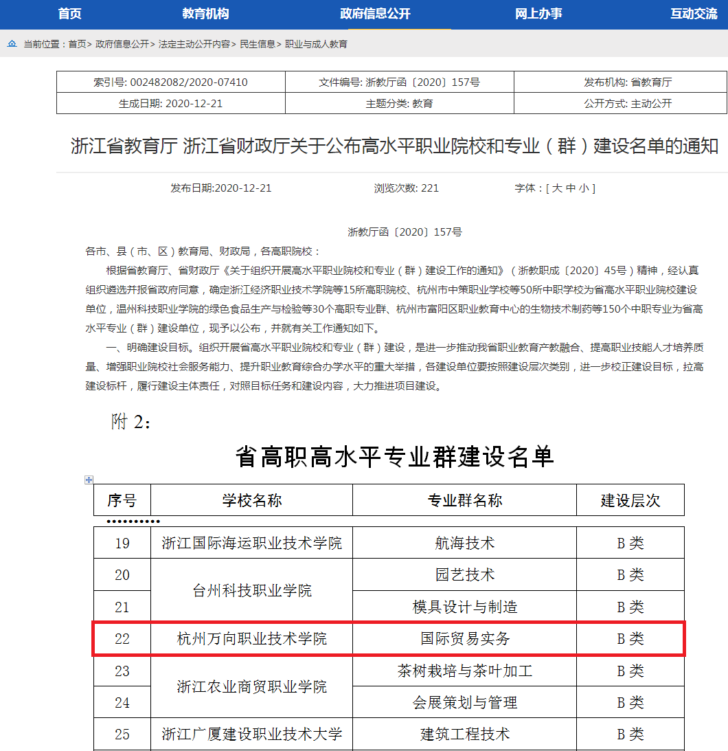 ——《国际贸易实务》专业群获得浙江省高水平专业群B类立项建设,学院在全省高水平专业群中占有一席之地。