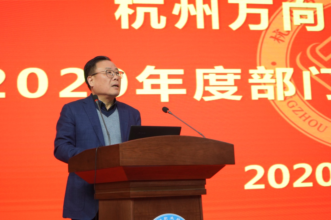 牟院长做总结讲话,他指出回望过去一年,各部门的工作都可圈可点。述职会的召开是推进工作和业绩考核的重要抓手,是学院工作提升的推进器,是互相学习提高的重要平台,是完善绩效考核的重要环节和举措。本次会议,述职主管态度积极,围绕部门中心,有重点有亮点,取得了圆满的效果。他要求中层干部认准目标,克难攻坚,要真正领会“第一性原理”,着力在“双高计划”进程中站得高;真正领会鲁冠球精神,着力在“提质培优”进程中走得远;真正领会“管理者职责,着力在“科研兴校”进程中抓得实。