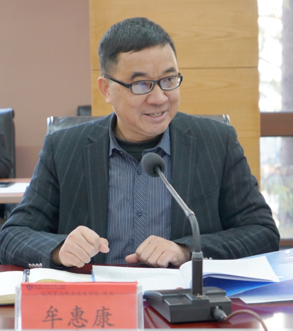 会议最后,学院院长、疫情防控领导小组组长牟惠康作总结发言,他首先传达了万向集团有关疫情防控相关文件精神。对于疫情防控,他指出,一要进一步提高疫情防控意识,准确把握疫情防控形势发展变化,强化问题意识、坚持底线思维,全面紧起来、严起来,做好打硬仗的思想准备和行动准备。从政治责任感和岗位使命感角度出发,立即行动,抓好落实。二要强化疫情防控工作,进一步抓实校园相对封闭管理,落实校园疫情常态化防控措施,确保常态化疫情防控和教学工作两手抓、两不误。三要疫情防控责任再压实,各项工作要按照会议布置要求去做,按照布置抓落实。他特别强调,疫情防控务必要将规定动作标准到位,认真贯彻落实好省委、省政府及省教育厅精神和指示,不折不扣落实落地,又要出色实效完成自选动作,更有效地加快学院各项工作的部署和推进,将2021年疫情防控工作落实到位。