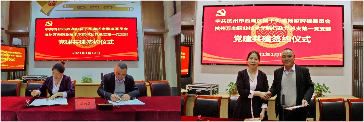 为全面贯彻习近平新时代中国特色社会主义思想和党的十九大精神,加强新时代基层党支部建设。1月12日,我院全省高校党建工作“样板支部”行政党总支第一党支部与留下街道杨家牌楼社区党委在杨家牌楼社区文化家园会议室举行党建共建签约仪式。学院党委委员、组织部长胡建华,行政党总支第一党支部书记俞月芳、杨家牌楼社区党委书记沈吉萍等10余人参加了签约仪式并座谈。