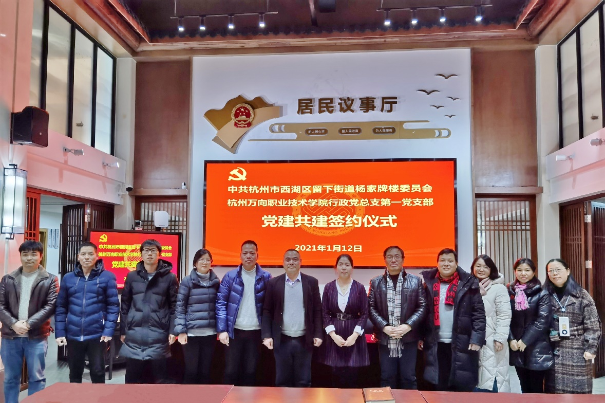 为全面贯彻习近平新时代中国特色社会主义思想和党的十九大精神,加强新时代基层党支部建设。1月12日,我院全省高校党建工作“样板支部”行政党总支第一党支部与留下街道杨家牌楼社区党委在杨家牌楼社区文化家园会议室举行党建共建签约仪式。学院党委委员、组织部长胡建华,行政党总支第一党支部书记俞月芳、杨家牌楼社区党委书记沈吉萍等10余人参加了签约仪式并座谈。