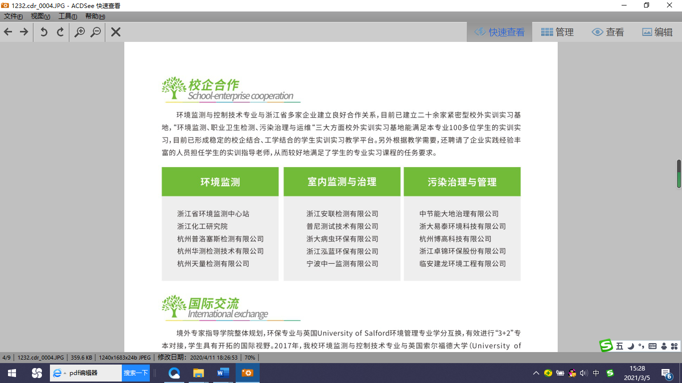 Beat365唯一官方网站环境监测与控制技术专业是杭州市级重点专业,以社会需求为导向,实践实训教学为特长,与浙江省环境监测中心、浙江省化工研究院、华测检测、普尼检测等20余家校外实训基地共同培养首选毕业生。