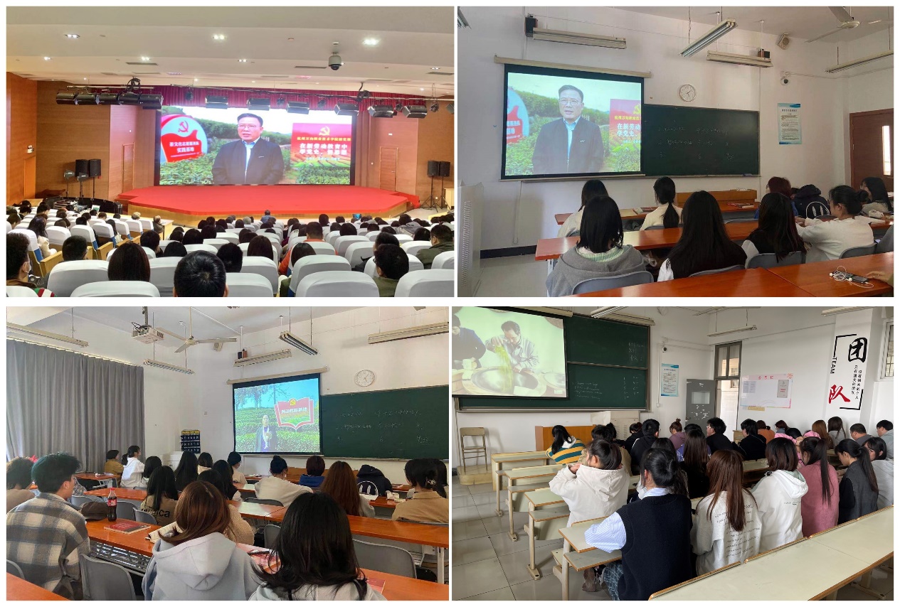 在茶山的另一头,学院小报告厅内座无虚席,在教室、在寝室,几千名师生对着电脑或拿着手机共同聆听这堂生动的直播党课。