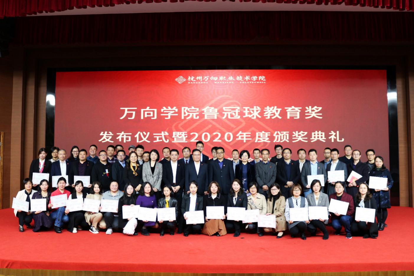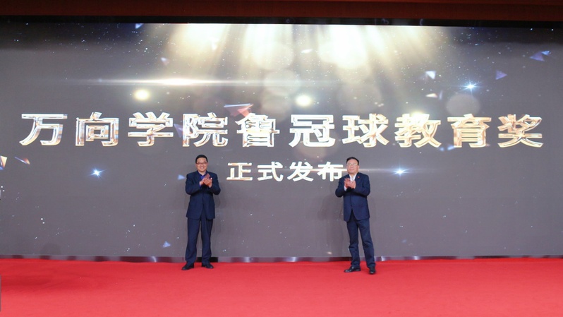 典礼上,学院党委书记莫晓平、院长牟惠康共同按钮发布“万向学院鲁冠球教育奖”。这一奖项是为传承与弘扬“鲁冠球心无旁骛的攻坚精神、鲁冠球履中蹈和的正道精神、鲁冠球久久为功的创造精神、鲁冠球荣辱不惊的乐观精神、鲁冠球厚德弘毅的大同精神”,促进学院发展与内涵建设,提升教育教学水平、教师与行政管理人员素养,助力学生全人教育实施,持续推进国际化办学水平,由万向集团设立,民生通惠公益基金会资助的公益项目。