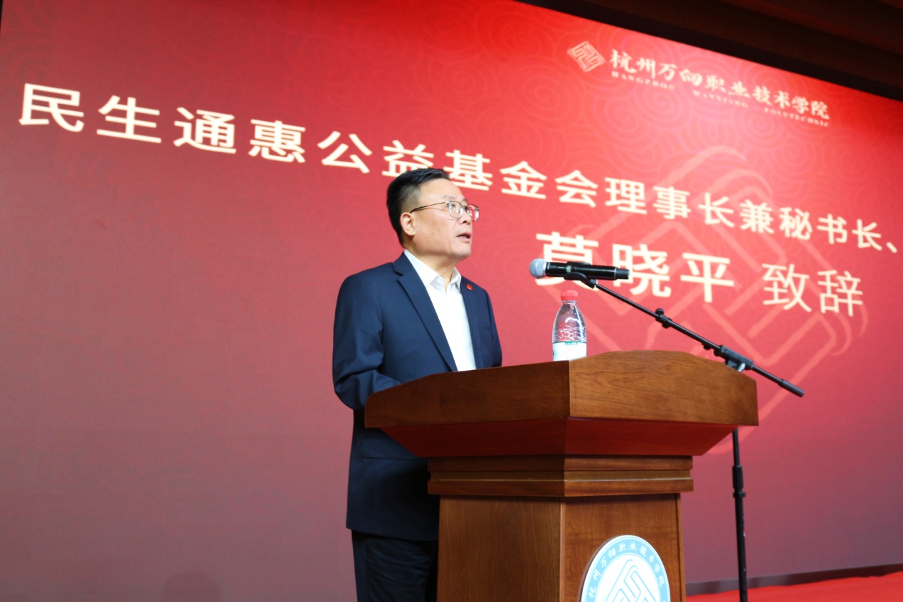 学院党委书记莫晓平在讲话中指出,万向集团公益办学,不求回报,扩建学院、设立“万向学院鲁冠球教育奖”,给师生创造好的工作与学习环境,为学院搭建国际化办学、全人教育的舞台,这对万向来说,是初心使然,也是使命在肩,更是厚植鲁冠球厚德弘毅的大同精神。他激励全体师生应在“万向学院鲁冠球教育奖”的激励下,努力生活、勤奋学习、踏实工作,传承与弘扬鲁冠球精神,为学院未来蓝图聚能,担起为党和国家培养合格的建设者和可靠的接班人的责任和使命。