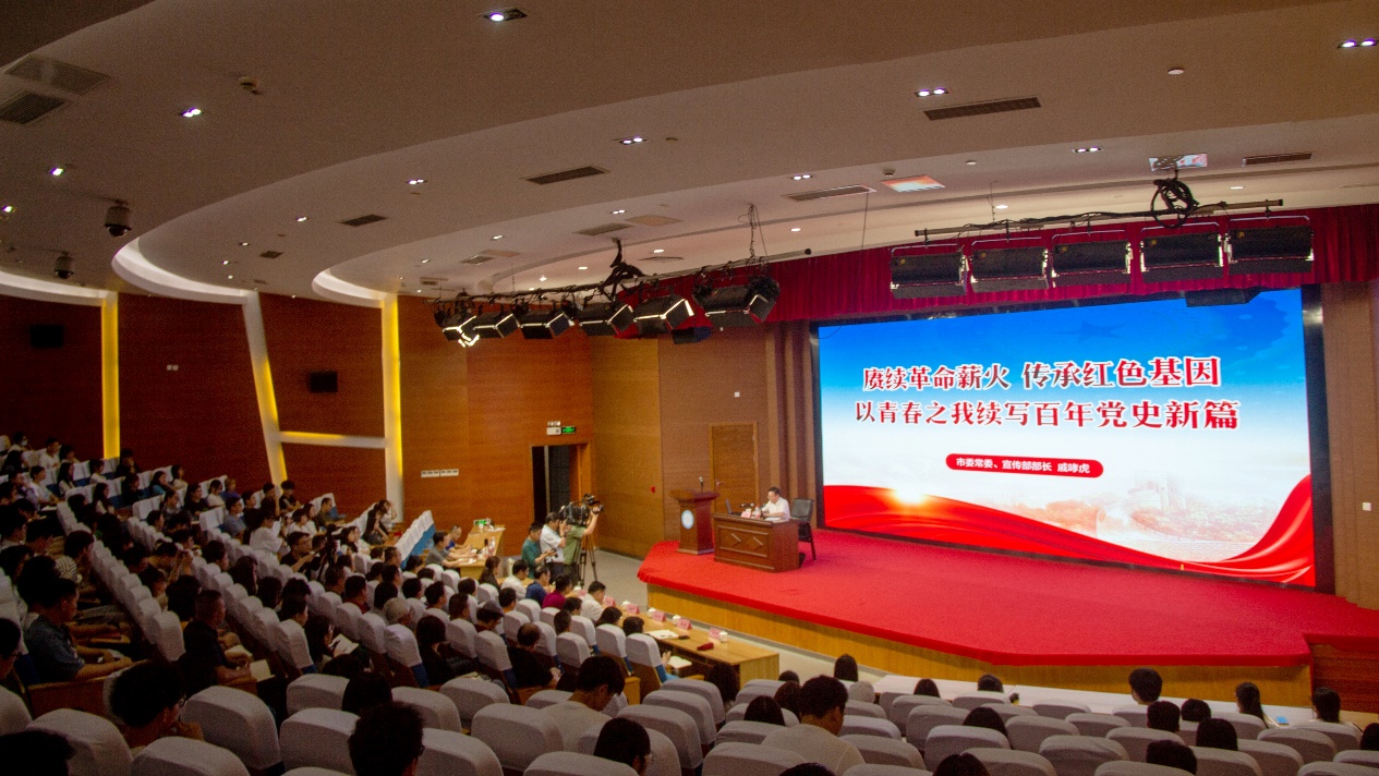 戚部长以《赓续革命薪火、传承红色基因 以青春之我续写百年党史新篇》为题,挖掘梳理了大量史料,结合杭州的党史历程和未来发展,讲述了杭州的荣光与未来。他通过详细生动地阐述发生在杭州的红色故事,讲述了杭州是一座具有光荣传统的英雄之城;通过阐述数字经济、城市大脑、幸福宜居,最美现象等内容,讲述了杭州是一座具有创新基因的活力之城;通过对未来工厂、未来城市、未来交通、未来文旅的介绍,讲述了杭州是一座具有无限可能的未来之城。同时,他指出杭州是一座具有向心引力的梦想之城,要将梦想融入城市发展中,共融共生。