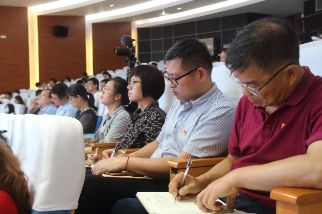 6月18日下午,杭州市委常委、宣传部部长戚哮虎为学院师生带来了一场别开生面的专题党课。学院党委书记莫晓平、院长牟惠康等党政领导班子,学院教职工代表及优秀学生干部代表200余人参加党课。党课由莫晓平书记主持。
