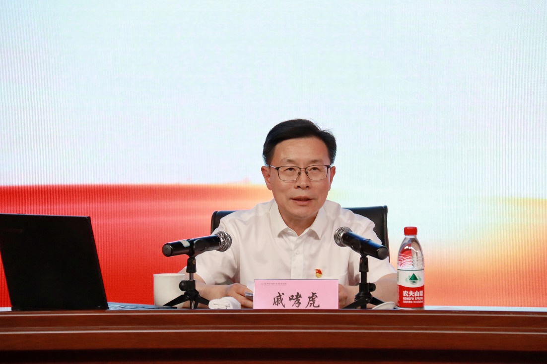 6月18日下午,杭州市委常委、宣传部部长戚哮虎为学院师生带来了一场别开生面的专题党课。学院党委书记莫晓平、院长牟惠康等党政领导班子,学院教职工代表及优秀学生干部代表200余人参加党课。党课由莫晓平书记主持。