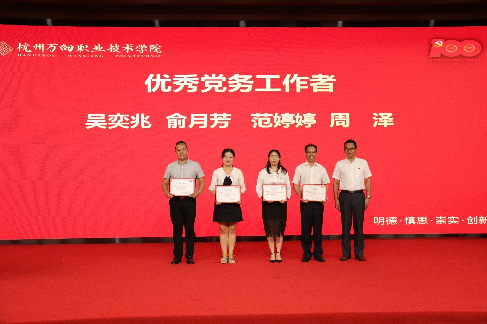 党委委员、党委办公室主任吴奕兆,党委委员、宣传部部长应瑶为优秀共产党员颁奖