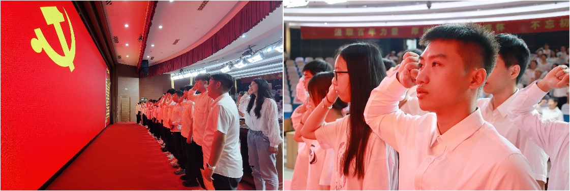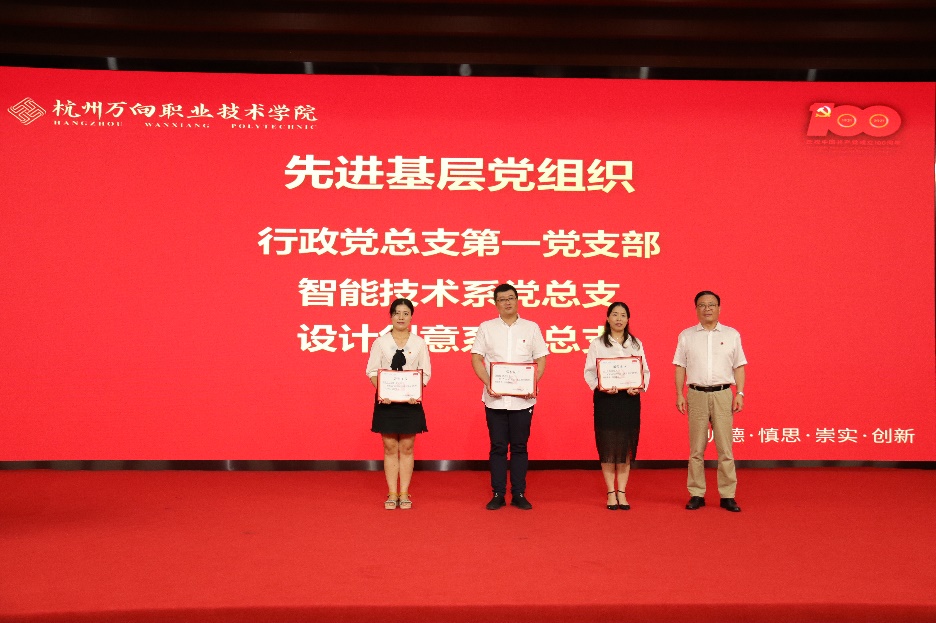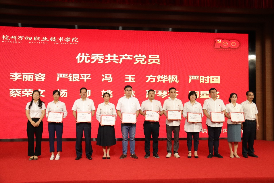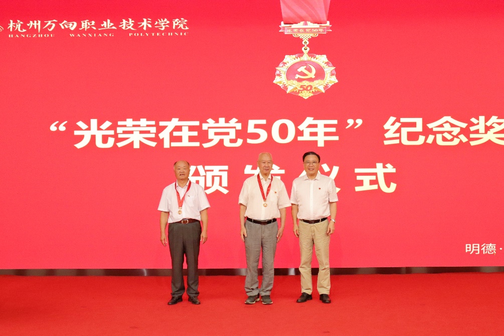 在观看直播后,组织学习了“全国优秀共产党员”、学院前董事长鲁冠球同志的先进事迹。并向赵永林、李光星、林多英三位同志颁发了“光荣在党50年”纪念章。会上还举行了170余名新党员参与的入党仪式、全体党员重温入党誓词、2020年“两优一先”先进基层党组织、优秀党务工作者、优秀共产党员表彰等环节。