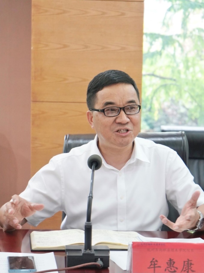 “述职既是总结,也是校务公开需要;既是部署,也是推进工作落实。”牟惠康院长围绕肯定、鼓劲、机遇、提速、担当五个关键词作工作报告。他称赞述职内容扎实,用“谋发展·庆百年·抓大事·强基础”鼓劲上半年的工作。随后,他从国家、浙江、杭州、高职层面指出了学院面临的机遇。并用四个提速指明了下阶段工作思路。最后他以“担当”为主题,部署了暑假及下学期的工作,希望大家提速三季度、担当有作为。